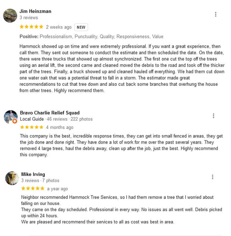 Customer satisfaction is at the core of Hammock Tree Service. Brian and his team go above and beyond to exceed your expectations, take the time to listen to your concerns, and provide honest and transparent advice.
